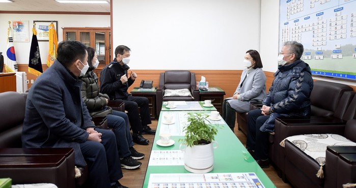 경기 김포시의회가 최근 코로나19와 조류인플루엔자(AI) 확산 방지를 위해 고군분투하고 있는 김포소방서와 보건소, 농업기술센터를 각각 찾아 위로하며 현장 목소리를 청취하고 준비해 간 위문품을 전달했다. 사진은 소방서를 방문한 의원들이 관계자와 이야기를 나누고 있는 모습. (사진제공=김포시의회)