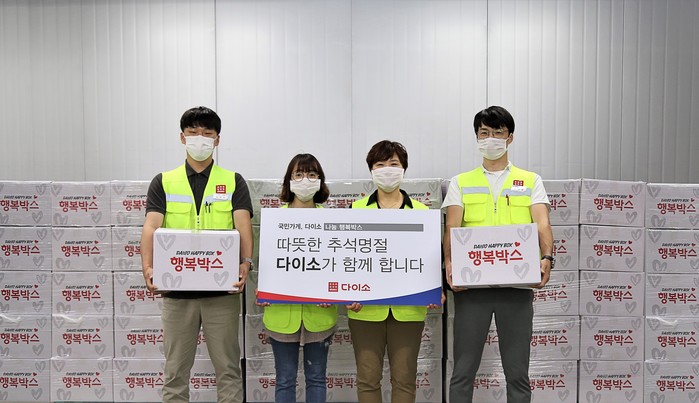 아성다이소 관계자는 “모두가 풍요로운 추석을 보내는 데 조금이나마 보탬이 되고자 이번 행복박스를 준비하게 됐다”며 “앞으로도 다이소는 ‘국민가게’라는 이름에 맞게 지역사회에 기여하기 위해 지원을 지속할 계획”이라고 전했다.