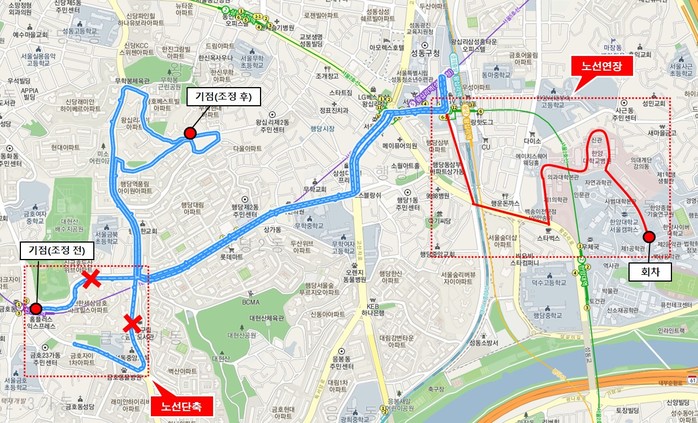 | ▲ 성동03-2번 마을버스 조정 노선도. (사진제공=성동구청) |