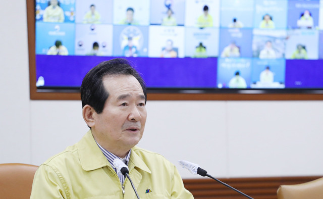 정세균 국무총리가 19일 정부서울청사에서 코로나19 대응 중앙재난안전대책본부 회의를 주재하고 있다.