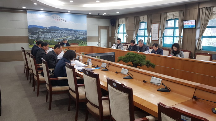 경기 동두천시는 지난 17일 2018년도 지적재조사 사업지구로 지정된 상패3지구에 대해 경계결정위원회를 개최했다. 이날 위원회는 동두천시법원 조해근 판사를 비롯한 11명의 위원 전원이 참석해, 상패동 72번지 일원 203필지(15만4353㎡)에 대해 '지적재조사에 관한 특별법'의 경계설정기준에 따라 설정된 경계를 심의·의결했다. 사진은 참여자들이 회의하는 모습. (사진제공=동두천시청)
