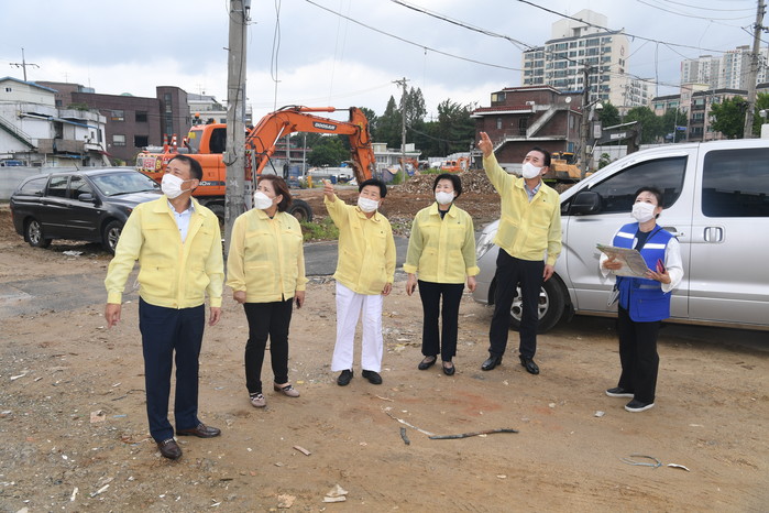 이후, 신길 뉴타운 재개발·재건축 지역의 공사현장을 돌아보며, 태풍으로 인한 피해 현황과 공사현장의 축대 붕괴 등 향후 발생될 수 있는 문제점 등을 점검하고 시정될 부분에 대해서는 보완과 책임 있는 시공을 요구했다.