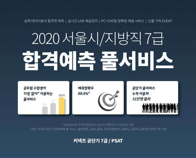 [시민일보 = 여영준 기자] ST유니타스(ST Unitas)의 공무원 시험 전문 브랜드 ‘커넥츠 공단기(이하 공단기)’가 오는 17일로 다가온 2020년도 서울시·지방직 7급 공무원 시험 당일 채점 결과 분석 및 합격 여부 확인이 가능한 합격예측 풀서비스를 진행한다.