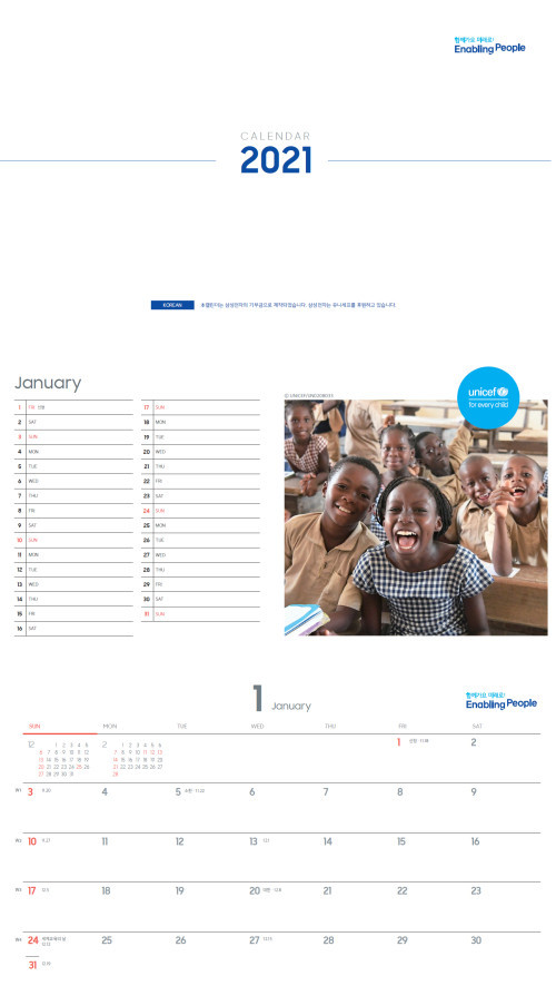 | ▲ 삼성전자가 구매한 유니세프 달력 이미지.(사진제공=삼성전자) |