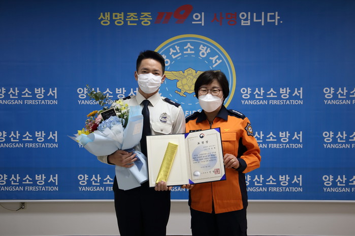 양산소방서(서장 박정미)는 차량화재 현장활동 유공에 대하여 구조대원(소방사 이중현)이 소방청장상을 수상했다고 밝혔다.