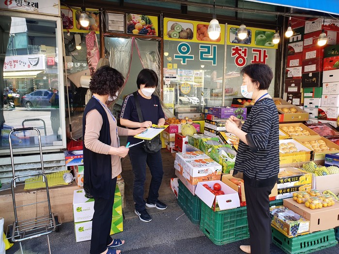 경기 안양시는 추석명절을 앞두고 최근 중앙시장에서 민·관합동으로 성수식품 지도점검을 겸한 원산지표시 캠페인을 전개했다. 사진은 중앙시장에서 성수식품 지도점검을 하고 있는 모습. (사진제공=안양시청)