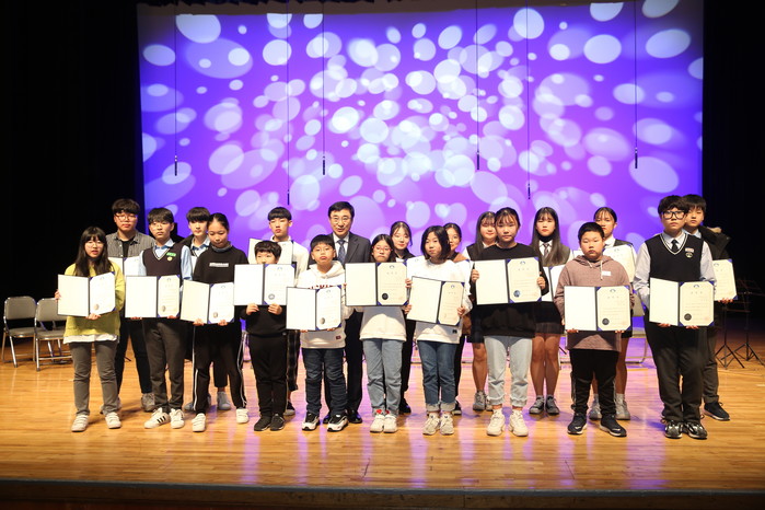 서울 도봉구는 최근 도봉구민회관 대강당에서 올해 동안 지역아동센터 활동을 함께 공유하고 성과를 나누는 자리로 ‘2019 지역아동센터 연합발표회’를 개최했다. 사진은 이동진 구청장이 모범아동들에게 표창장을 수여하고 기념촬영을 하는 모습. (사진제공=도봉구청)