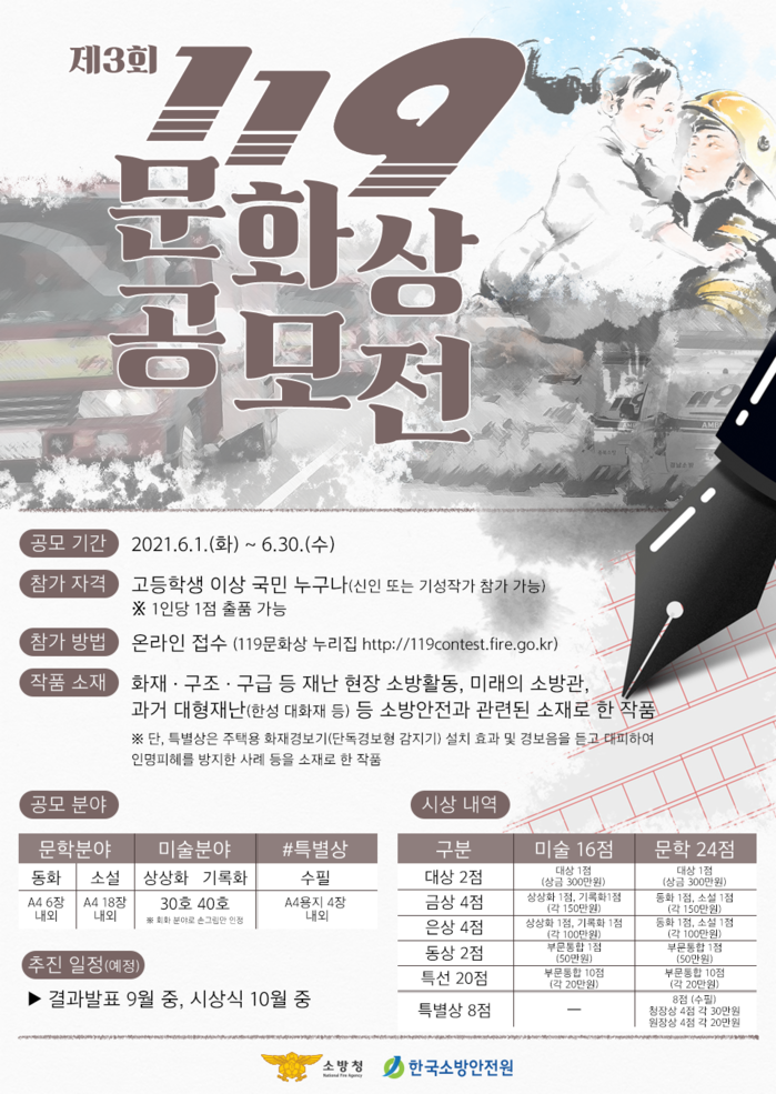‘제3회 119문화상’은 소방의 가치와 역할에 대해 회고할 수 있는 기회를 제공하고 안전문화 확산에 기여하고자 마련됐다.