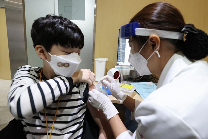 만 13∼18세 이하 청소년을 대상으로 독감 무료예방접종 사업이 재개된 13일 서울 강서구 한국건강관리협회 건강증진의원 서울서부지부에서 한 학생이 무료 독감 예방 접종을 하고 있다.