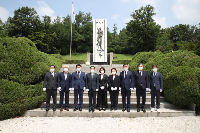 [성남=오왕석 기자] 성남시의회(의장 윤창근) 의장단은 8일 오전 수정구 태평동에 위치한 현충탑에서 참배를 하며 제8대 후반기 의회의 힘찬 도약을 다짐하는 시간을 가졌다.