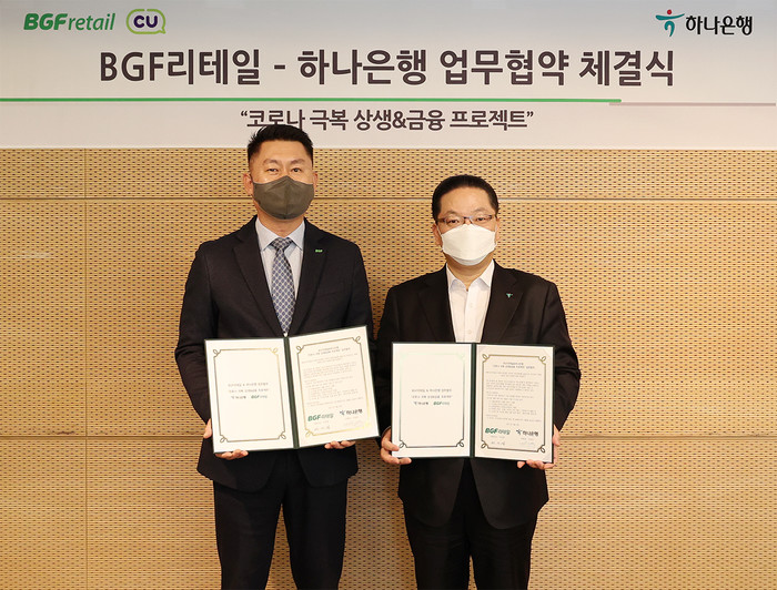 이외에도 하나은행과 BGF리테일은 상생협력펀드 운용을 통해 CU편의점 가맹점주 앞 코로나19 위기 극복을 위한 유동성 지원에 함께 나설 계획이다.