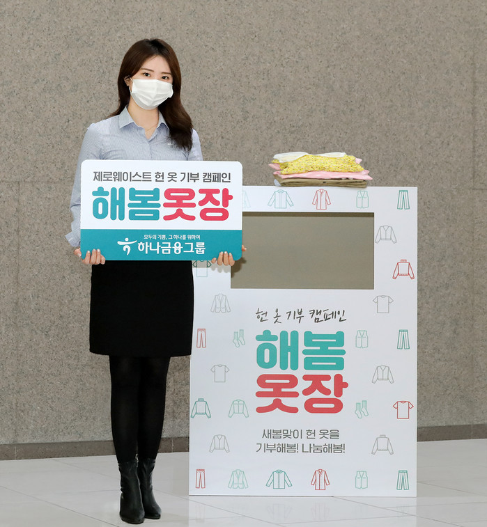 [시민일보 = 여영준 기자] 하나금융그룹은 코로나19 장기화로 어려움을 겪고 있는 국내외 취약계층을 돕고, 적극적인 ESG경영 실천을 위해 모든 관계사 임직원이 참여하는 헌 옷 기부 캠페인 '해봄옷장'을 오는 29일~4월2일 실시한다고 23일 밝혔다.