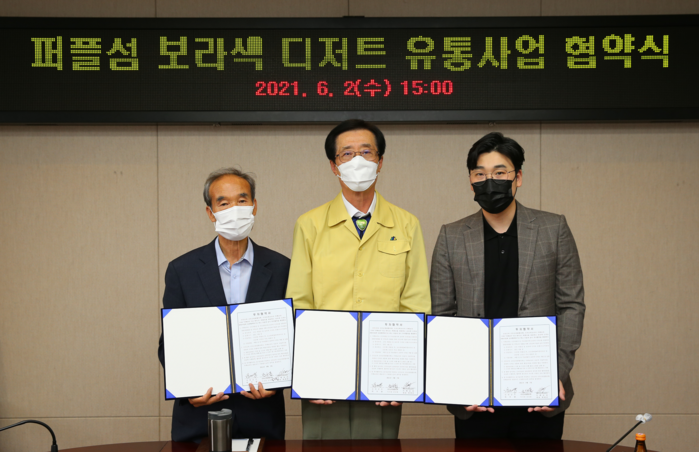 신안군과 관광협의회, ㈜디저트픽코리아 카페보라는 지난 6월 2일 신안군청에서 보라색 디저트 유통사업 업무협약을 체결하였다.