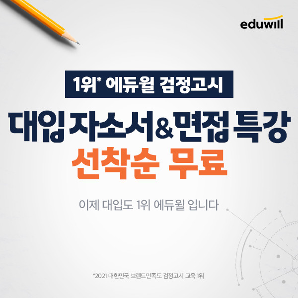 [시민일보 = 여영준 기자] 에듀윌이 검정고시로 대학 입시를 준비하는 수험생을 위해 대입 ‘자소서&면접 특강을 무료로 제공한다.