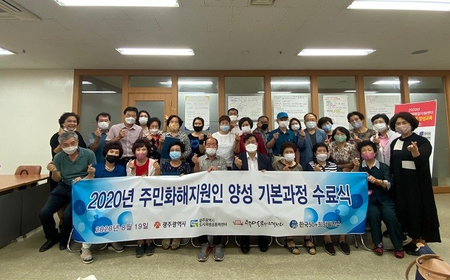 | ▲2020년 주민화해지원인 양성 기본과정 수료식 기념촬영 / 광주광역시 제공 |