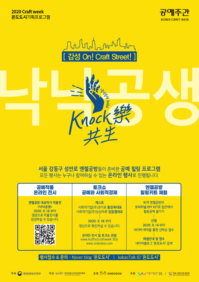 구는 ‘2020년 공예주간’을 맞아 18~27일 약 2주간 ▲ 엔젤공방 대표작품 온라인 전시회 ▲ 사회적경제 및 창업 토크쇼 ▲ 엔젤공방 체험용 엔젤힐링키트 제작 ▲강동구청 2청사 오프라인 전시존 등의 행사를 열어 주민에게 다양한 문화 컨텐츠를 제공하고, 강동구 엔젤공방을 다방면으로 홍보할 예정이다.