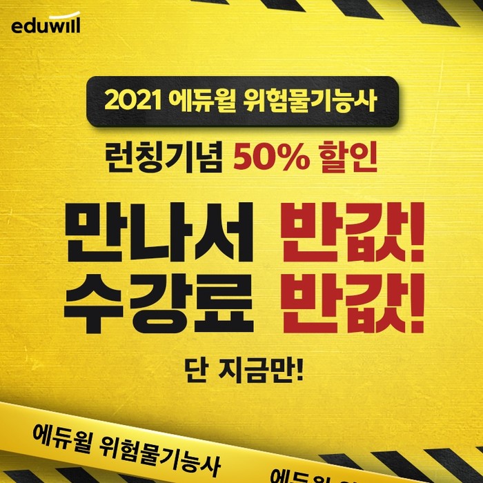[시민일보 = 여영준 기자] 종합교육기업 에듀윌(대표 박명규) 위험물기능사의 단기패스가 오는 17일 론칭을 앞두고 있는 가운데, 50% 얼리버드 이벤트를 오는 16일까지 진행한다.