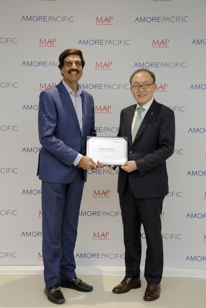 아모레퍼시픽그룹 배동현 대표이사와 MAP 그룹 샤르마(V.P. Sharma) CEO가 참가한 파트너십 체결식은 지난달 29일(현지시간), 인도네시아 자카르타 MAP 그룹 본사에서 열렸다. 이번 협약을 통해 아모레퍼시픽그룹은 MAP 그룹이 운영하는 유통망에서 설화수, 라네즈, 이니스프리, 에뛰드하우스의 제품을 선보인다.