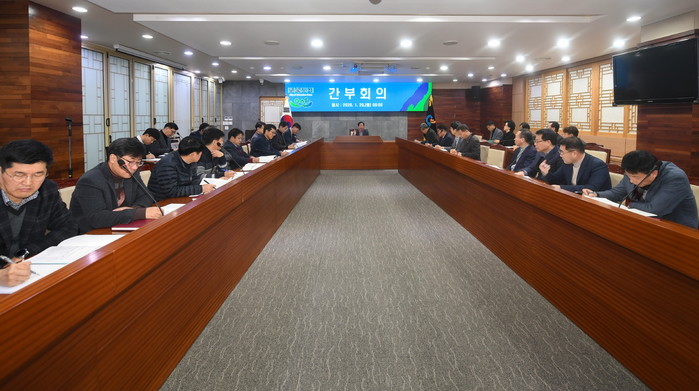 경기 오산시는 20일 시청 상황실에서 김문환 부시장 주재로 ‘2020년 공직기강 종합 추진 보고회’를 개최했다. 보고회에서는 근무환경 개선과 투명한 행정을 실천하는 조직문화를 정착시키고 시민에게 신뢰와 감동을 줄 수 있는 공직사회 개혁과 변화를 담은 기강 확립 종합대책이 논의됐다. 사진은 회의가 진행 중인 모습. (사진제공=오산시청)