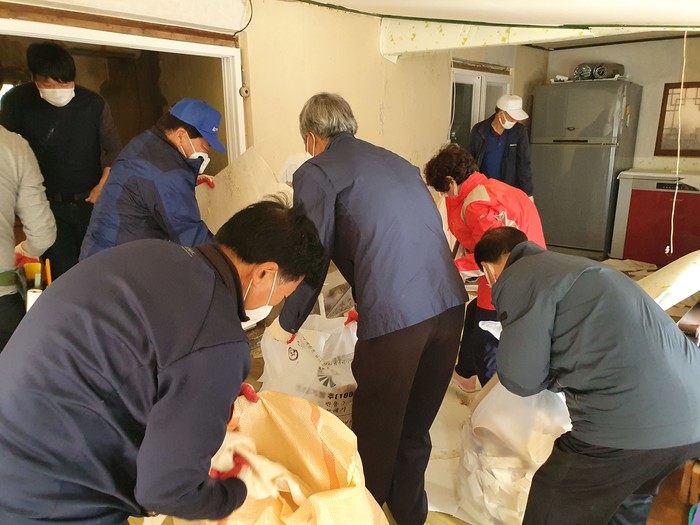 충남 홍성군 서부면 주민자치위원회는 최근 지역내 장애인가구, 홀몸노인 등 복지사각지대에 놓여 있는 3가구를 대상으로 집안 청소 및 도배 등 사랑의 집 고쳐주기 봉사활동을 전개했다. 사진은 봉사자들이 대상자의 집안을 청소하고 있는 모습. (사진제공=홍성군청)