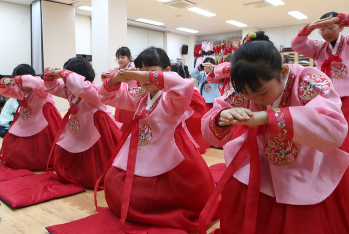 큰 절 배우는 꼬마숙녀들