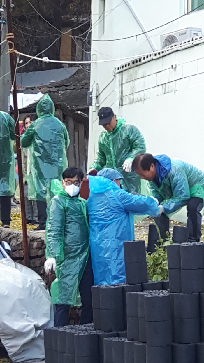 인천 미추홀구 학익1동 행정복지센터는 18일 인천대학교 경영대학원과 (사)인천지방행정동위회가 후원한 연탄 2000장을 10가구에게 전달하는 '사랑의 연탄 나눔행사'를 개최했다. 사진은 행사에 참여한 봉사자들이 연탄을 나르고 있는 모습. (사진제공=미추홀구청)