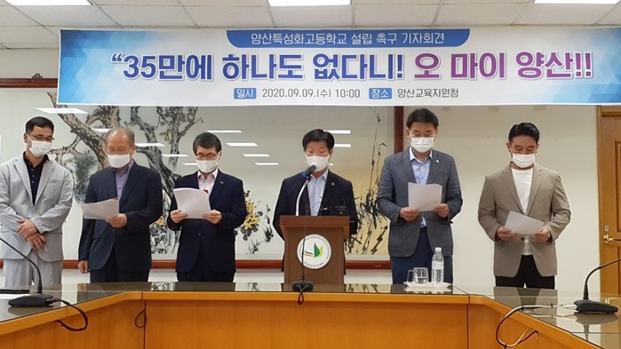 양산특성화고 설립 추진은 지난 2013년 3월 양산시의회에 설립 건의안을 제출하는 것으로 시작해 현재까지 이루지 못한 양산시민의 간절한 숙원 사업이다. 적합한 부지를 확보하는데 많은 시간과 노력이 소요되었으며, 지난 7월에 경상남도교육청 자체투자심사를 통과하였다.