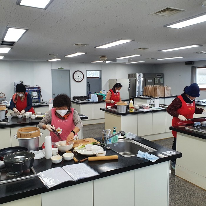 경기 여주시농업기술센터 향토음식연구회에서는 최근 총 8회에 걸쳐 재능활용 지역돌봄 사업의 일환으로 실시된 역량강화교육에서 배운 솜씨를 발휘해 지역내 복지시설 4곳에 80인분의 음식을 전달하며 나눔봉사를 했다. 사진은 회원들이 나눔할 전통음식을 만들고 있는 모습. (사진제공=여주시청)
