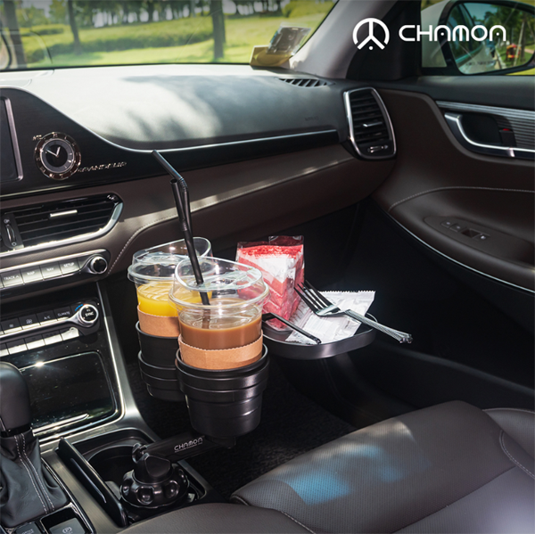 차모아의 베스트셀러 품목인 클로버 자동차 컵홀더는 최대 4잔의 음료를 거치할 수 있으며 간식이나 지갑, 키홀더, 동전 등 차량 내부에 방치되는 잡동사니를 보관하기 간편한 제품이다.