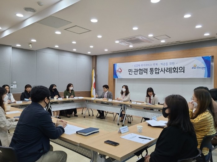 경기 동두천시 무한돌봄센터가 최근 시청 소회의실에서 사회복지기관 종사자와 사례관리사 등이 참석한 가운데 장애인가구 지원체계 구축을 위한 '2020년 제2회 통합사례회의'를 개최했다. 사진은 관계자들이 회의를 하고 있는 모습. (사진제공=동두천시청)