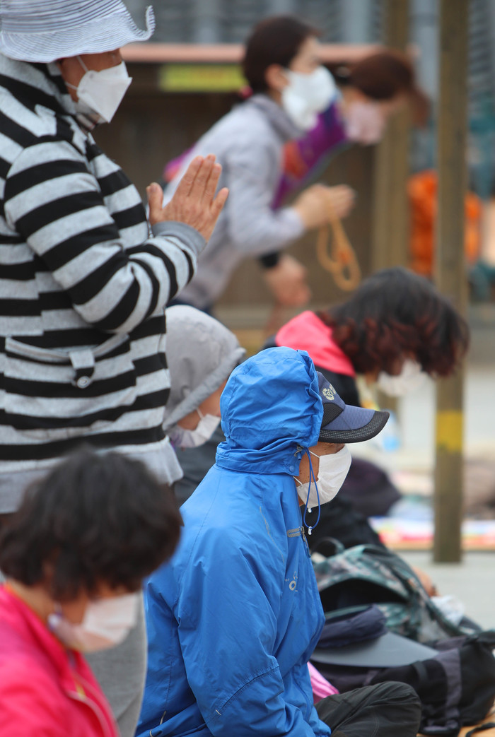 수능을 50일 앞둔 14일 경북 경산시 와촌면 팔공산 갓바위에서 사람들이 기도하고 있다. 갓바위는 관봉석조여래좌상으로 6m 규모의 불상 머리에 갓 모양의 넓은 돌이 얹어진 모습이다. 1년 365일을 의미하는 1365개의 갓바위 돌계단 끝에 있으며 간절히 빌면 한가지 소원은 꼭 들어준다는 이야기가 전해져 해마다 수능을 앞두고 학부모들의 발길이 이어진다.