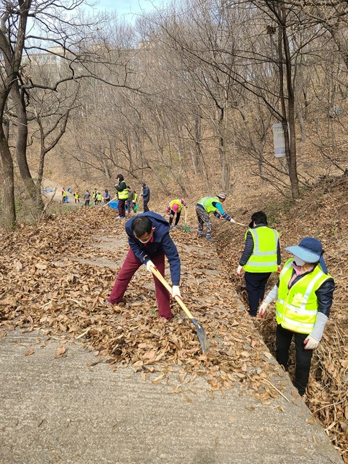경기 광주시 쌍령동행정복지센터가 최근 여름철 집중호우를 대비해 국수봉 등산로 일원 측구 배수로와 그레이팅에 쌓인 낙엽 및 쓰레기를 수거했다. 사진은 이날 봉사자들이 국수봉 등산로와 쌍령초등학교 산책로의 측구 및 배수로를 점검하고 잔가지·낙엽 등을 치우고 있는 모습. (사진제공=광주시청)