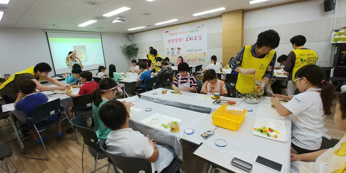 경기 하남시 드림스타트가 12일 사례관리 아동 30명을 대상으로 '성장 쑥쑥! 영양 교실'을 운영했다. 이날 교육은 학교급식지원센터 전문 강사가 안전한 먹거리와 올바른 식습관에 대해 지도했다. 사진은 피클만들기 체험을 하는 아이들의 모습. (사진제공=하남시청)