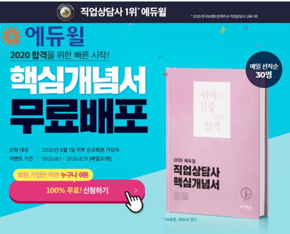 [시민일보 = 여영준 기자] 종합교육기업 에듀윌(대표 박명규)이 직업상담사 시험을 준비하는 수험생을 위해 ‘핵심개념서’ 교재를 무료로 배포한다.