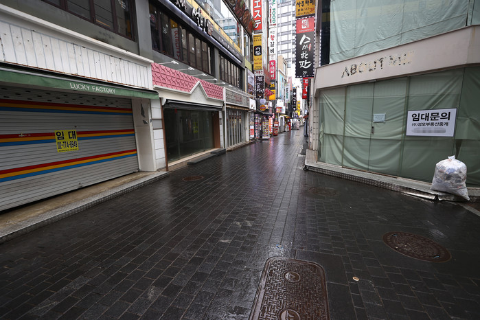 26일 명동거리에 폐업한 상점들이 눈에 띈다. 코로나19가 전 세계를 덮친 지난해 한국의 연간 GDP 성장률은 -1%로 외환위기 이후 처음으로 역성장을 기록했다. 특히 코로나19 재유행에 위축된 민간소비가 이같은 결과에 반영됐다.