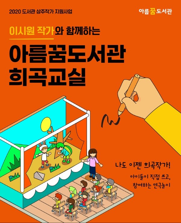 ‘아름꿈 희곡교실’은 문화체육관광부가 주최하고 한국문화예술위원회가 주관하는 ‘2020년 도서관 상주작가 지원사업’의 일환으로 마련된 프로그램으로, 어린이들이 아름꿈도서관 상주작가인 이시원 작가와 함께 우리나라 설화를 희곡으로 각색하고 낭독극 공연을 진행한다.