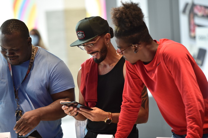 | ▲ 미국 뉴욕주 가든시티(Garden City)에 위치한 '삼성 익스피리언스 스토어'에서 '갤럭시 Z 폴드3'·'갤럭시 Z 플립3'를 체험하고 있는 모습. (사진제공=삼성전자) |