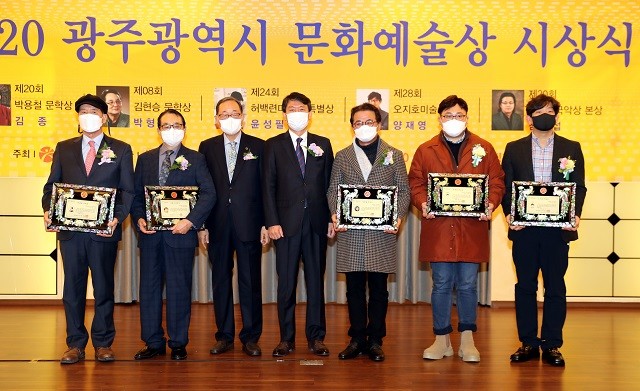[광주=정찬남 기자] 광주광역시는 17일 치평동 라붐웨딩홀에서 ‘2020년 문화예술상 시상식’을 열고 문학, 미술 등 5개 부문에 선정된 5명에게 상패를 수여했다.