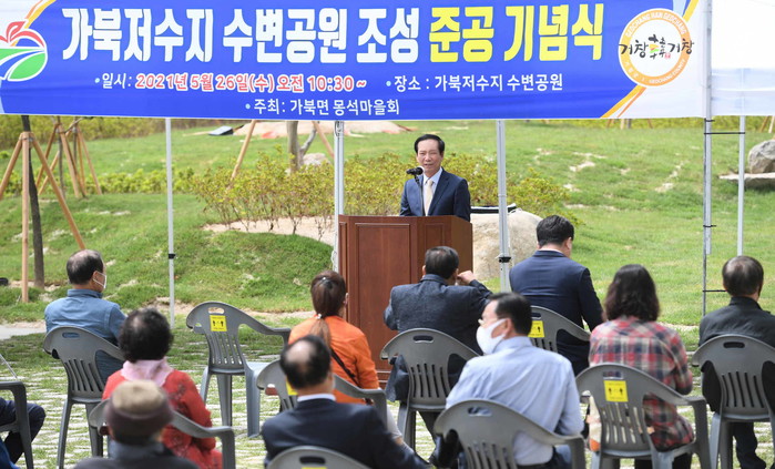 거창군 가북면(면장 이정희)은 26일 주민 공동정원과 군민 휴식공간으로 탄생한 가북저수지 수변공원 준공식을 구인모 거창군수, 경남도의원, 거창군의원, 한국농어촌공사 거창함양 지사장 등 70여 명이 참석한 가운데 개최했다고 밝혔다.