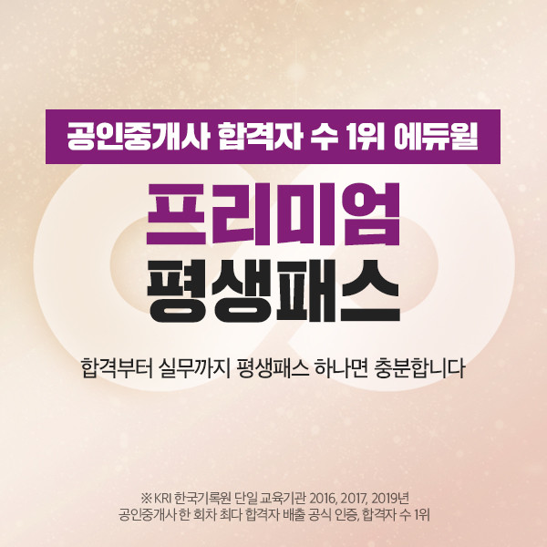 [시민일보 = 황혜빈 기자] 종합교육기업 에듀윌(대표 박명규)은 공인중개사 시험을 준비하는 수험생 3명 중 2명이 선택한 ‘프리미엄 평생패스’의 할인 이벤트를 실시한다고 20일 밝혔다.