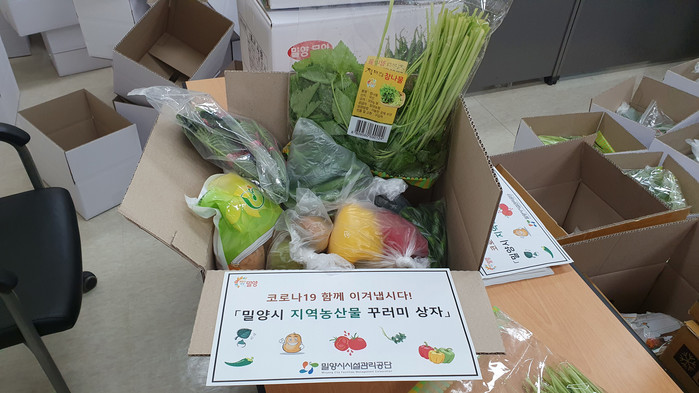 밀양시시설관리공단(이사장 이병희)은 코로나19로 침체된 지역경제 활성화를 위해 밀양 농산물 꾸러미 120박스를 만들어 관외에 거주하는 친인척들에게 보냈다고 22일 전했다.
