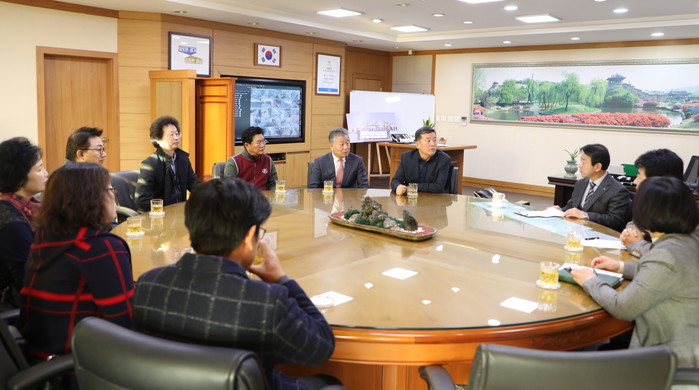 경기 수원시 권선구 한국공인중개사협회 권선구지회는 지난 16일 권선구청장실에서 경기사회복지공동모금회에 불우이웃돕기 성금 347만4000원과 수원사랑장학재단에 장학금 100만원을 기탁했다. 사진은 이택용 구청장이 조재성 지회장 및 관계자들과 이야기를 나누고 있는 모습. (사진제공=권선구청)