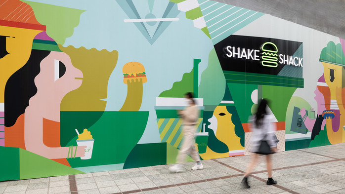 ‘쉐이크쉑 갤러리아 타임월드점’ 호딩 아트(Hoarding Art, 공사장 주위의 임시 가림막에 그리는 작품)는 그래피티 아티스트 ‘정크하우스’와 협업해 대전의 커뮤니티 허브로 자리잡을 쉐이크쉑과 이를 즐기는 사람들의 모습을 생동감 있는 컬러의 그래피티로 표현했다. 쉐이크쉑은 각 매장의 지역적 특성을 반영한 호딩 아트를 통해 지역 커뮤니티와 소통해왔으며 고객들이 참여 가능한 독특한 공공 문화 예술 작품을 만들어왔다.
