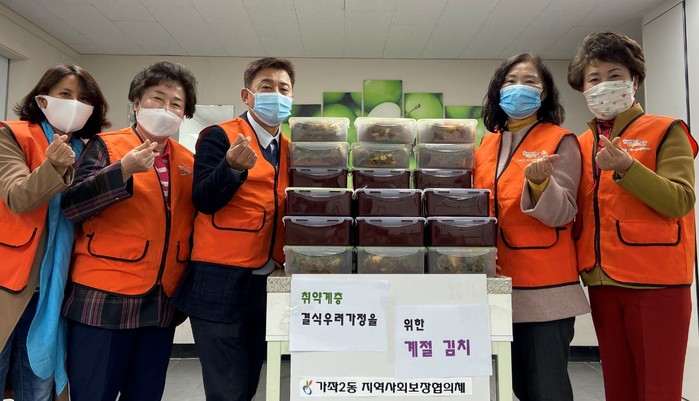 인천 서구 가좌2동 지역사회보장협의체는 최근 코로나19 사태 장기화에 따라 결식이 우려되는 홀몸노인 등 지역내 취약계층 가구 40곳에 계절김치를 전달했다. 사진은 협의체 위원들이 전달할 김치 포장을 마치고 함께 기념촬영을 하는 모습. (사진제공=서구청)