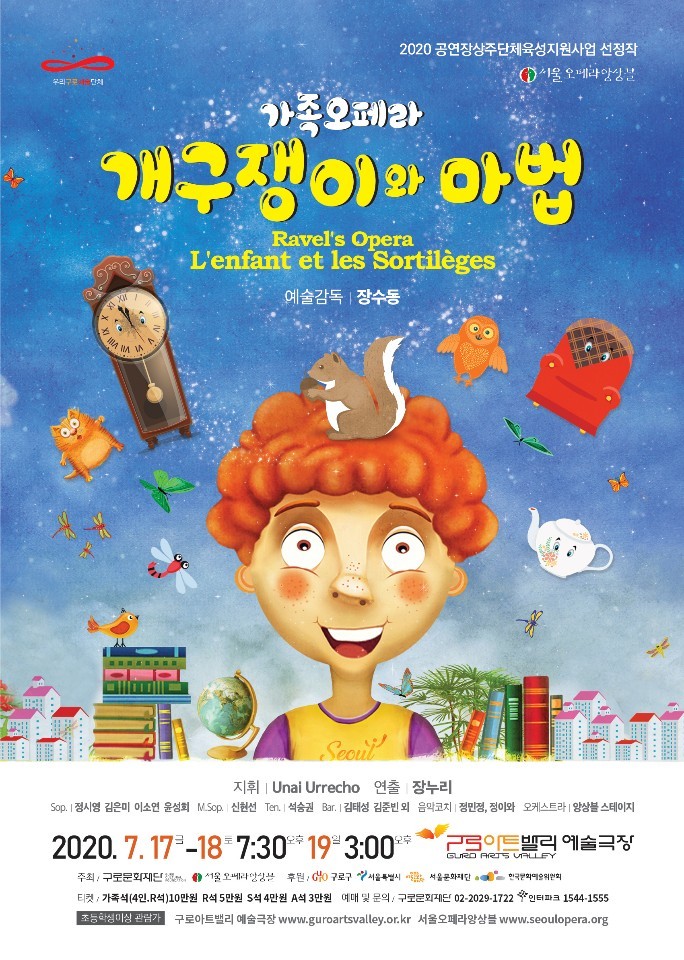 서울특별시, 서울문화재단, 한국문화예술위원회가 후원하는 오페라<개구쟁이와 마법>은 가족석(4인,R석) 10만원, R석 5만원, S석 4만원, A석 3만원에 관람이 가능하며,구로문화재단 홈페이지와 인터파크에서 예매 가능하다.