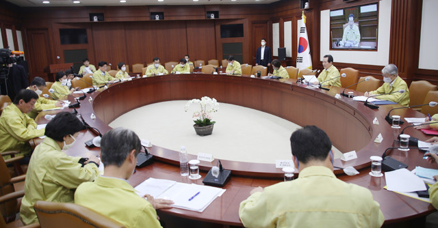 정세균 국무총리가 3일 오후 정부서울청사 중앙재난안전상황실 서울상황센터에서 열린 신종 코로나바이러스 감염증(코로나19) 대응 중앙재난안전대책본부 회의에서 발언하고 있다.