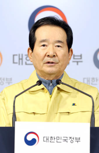 정세균 국무총리가 22일 오후 정부서울청사에서 신종 코로나바이러스 감염증(코로나19)이 전국적 확산세로 접어든 것과 관련해 대국민담화를 발표하고 있다.