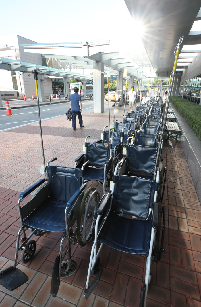 전국 의사 2차 총파업 첫 날인 26일 오전 서울 서초구 서울성모병원 본관 앞에 환자용 휠체어가 놓여 있다. 정부는 이날 오전 8시를 기해 수도권 전공의·전임의에 업무개시 명령을 발동했다.
