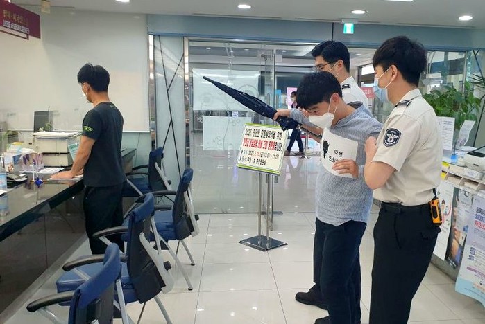 이에 따라 이날 훈련은 공무원, 청원경찰, 경찰관, 대역 민원인 등 20여명이 참여한 가운데 진행됐다.