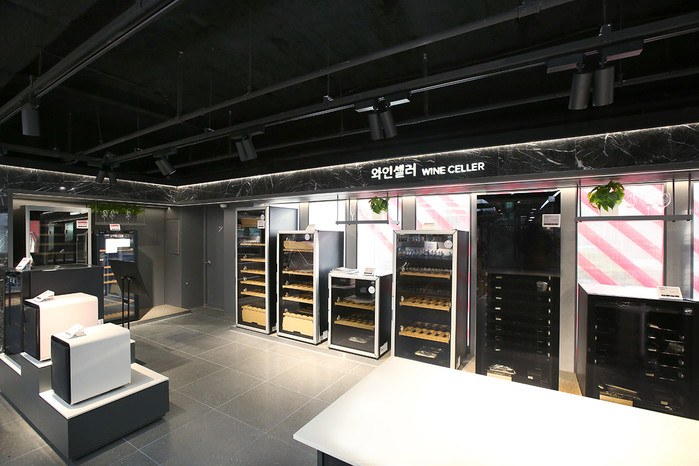▲ 롯데하이마트 메가스토어 압구정점 1층 와인존에 진열된 와인셀러 코너. (사진제공=롯데하이마트) |